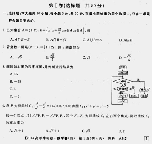 【创冠】安徽省2014年高考冲刺调研卷(数学理)(四)扫描版