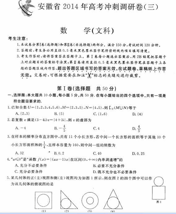 安徽省2014届高三高考冲刺调研卷(数学文)(三) 扫描版