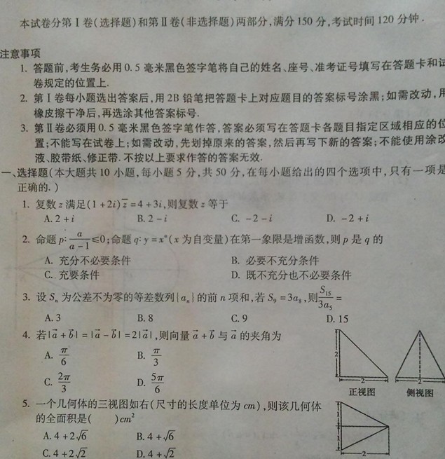 安徽省宣城市2014届高三第三次教学质量检测(数学理)扫描版