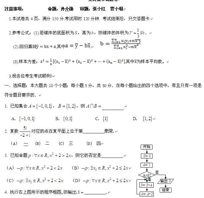 湖南省益阳市箴言中学2014届高三第九次模拟考试(数学文)