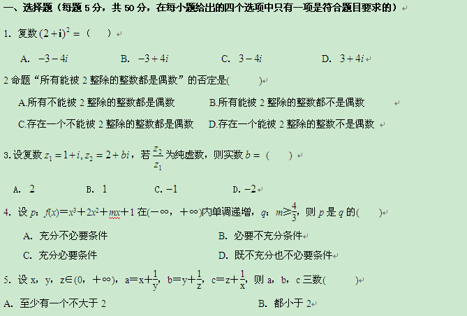 安徽省阜南县王店亲情学校2013-2014学年高二下学期第二次月考(数学文)