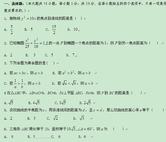 四川省新津中学2013-2014学年高二5月月考(数学理)