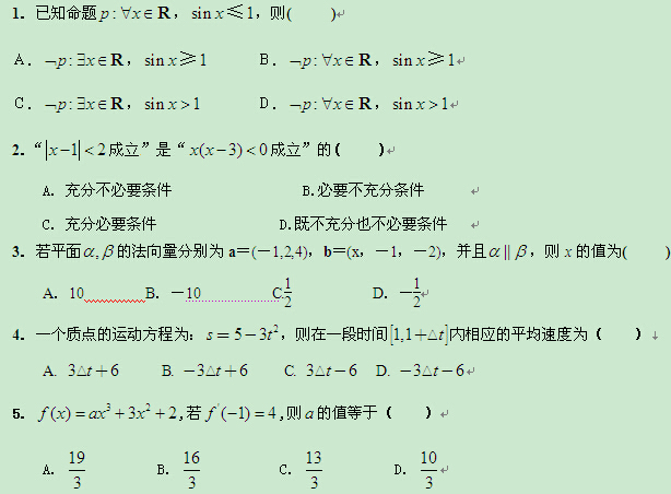 海南省东方市八所中学2013-2014学年高二下学期期中考试(数学理)