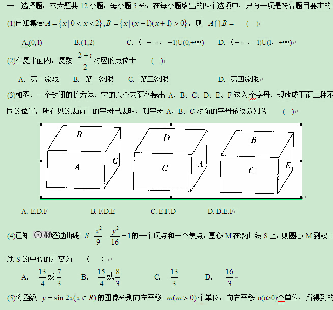 河南省濮阳市2014届高三第二次模拟考试(数学理)