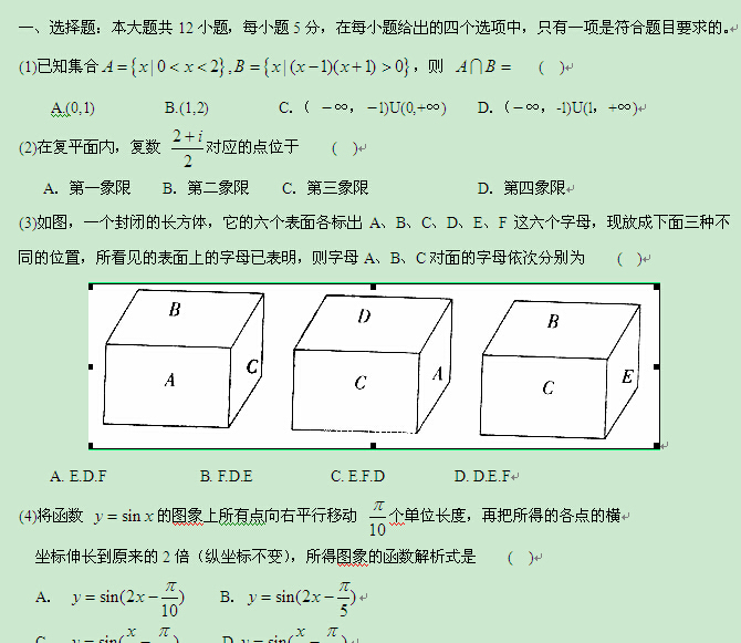 河南省濮阳市2014届高三第二次模拟考试(数学文)