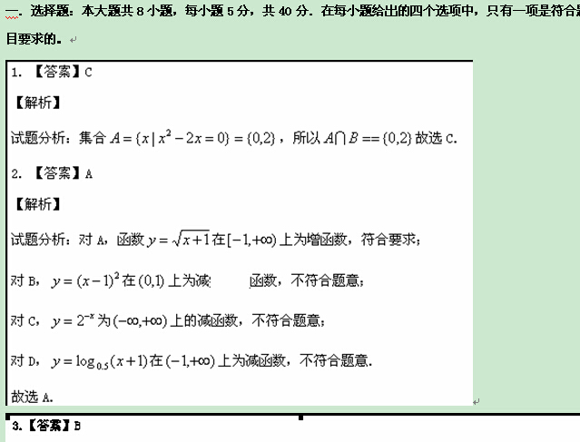 2014年普通高等学校招生全国统一考试北京卷(数学理)扫描版小题解析