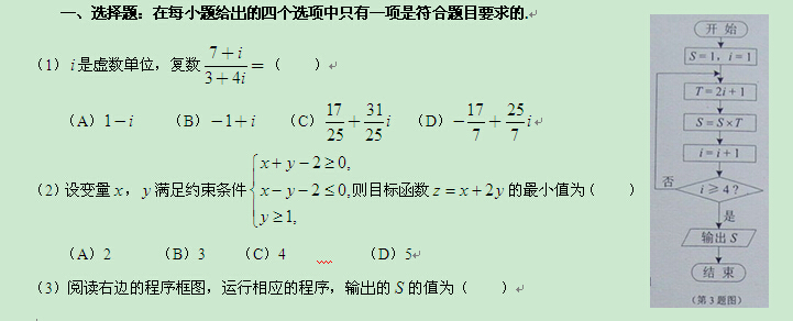 2014年普通高等学校招生全国统一考试天津卷(数学理)word版含答案