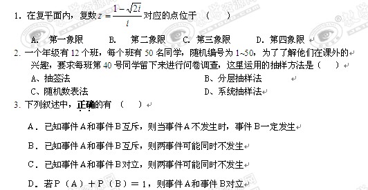 浙江省余姚中学09-10学年高二第二次质量检测(数学文)