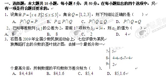 浙江省新安江中学、寿昌中学、严州中学2010届高三上学期联考(数学文)