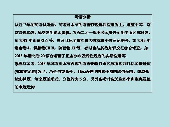 【金榜名师面对面】2015高考一轮复习课件:6-3二元一次不等式(组)与简单的线性规划问题