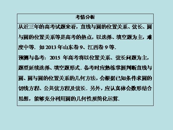 【金榜名师面对面】2015高考一轮复习课件:8-4直线与圆的位置关系