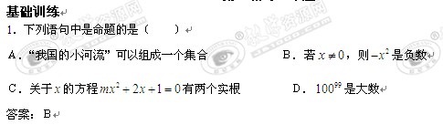 数学:1.1 《命题及其关系》 学案之课时训练 (新人教版选修2-1)