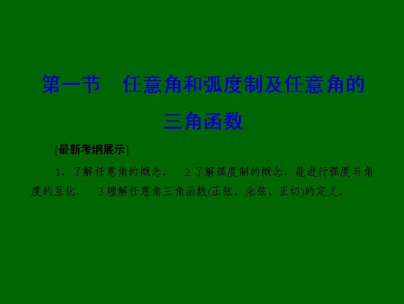 【金榜探究】2015届高考数学(人教A版·文科)总复习配套课件:3-1 任意角和弧度制及任意角的三角函数
