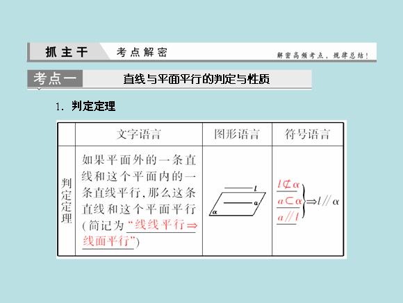 【金榜探究】2015届高考数学(人教A版·文科)总复习配套课件:7-4 直线、平面平行的判定及其性质