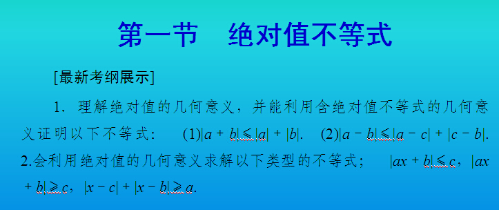 【金榜探究】2015届高考数学(人教A版·文科)总复习配套课件:选4-5 1 绝对值不等式