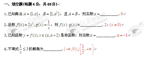 上海市上财附中09-10学年高一上学期期末考试(数学)