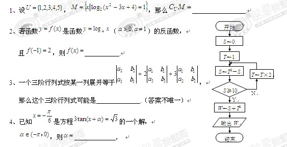 上海市普陀区2010届高三上学期质量调研(数学文)