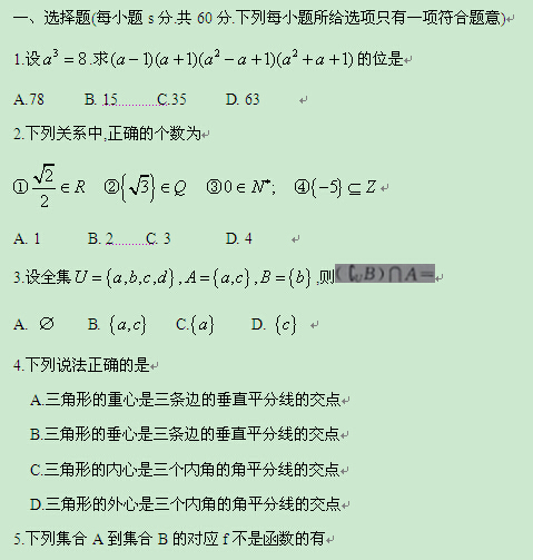 【全国百强校】河北省衡水中学2014-2015学年高一上学期一调考试(数学)