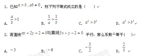 云南省昆明三中、滇池中学09-10学年高二上学期期末考试(数学文)