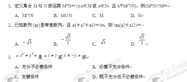 湖北省鄂州市2010届高三上学期摸底考试(数学理)