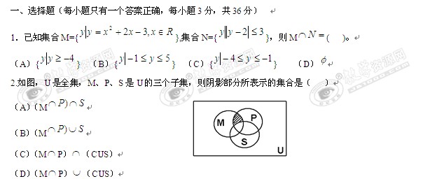 河南省白牛高中2009-2010学年高一上学期期末模拟试题(数学)