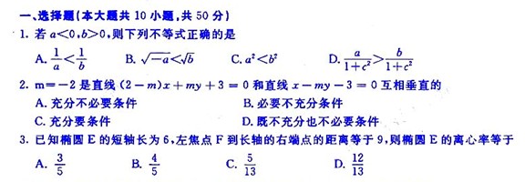 湖北省黄冈市09-10学年高二上学期期末考试(数学理)扫描版