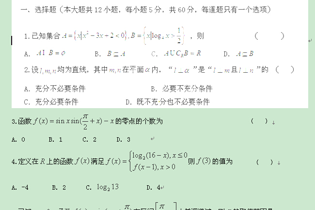 内蒙古第一机械制造集团有限公司第一中学2015届高三12月月考(数学文)