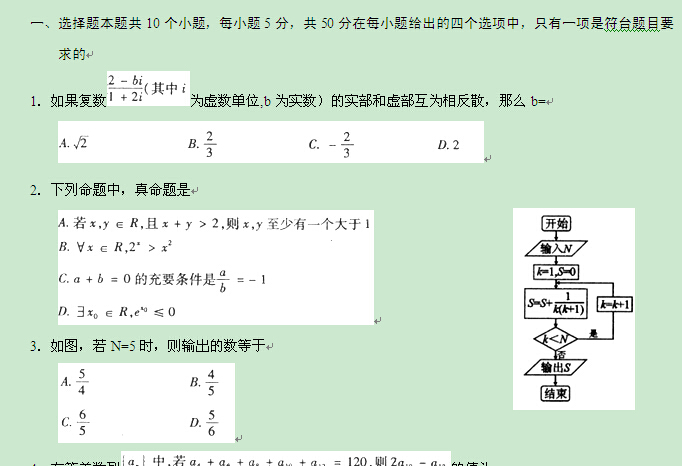 四川省德阳市2015届高三第一次诊断考试 (数学理)缺答案