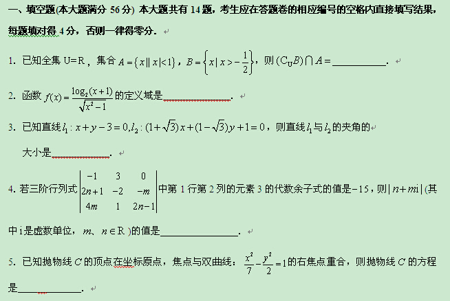 上海市黄浦区2015年一模数学试卷文理合卷(数学)