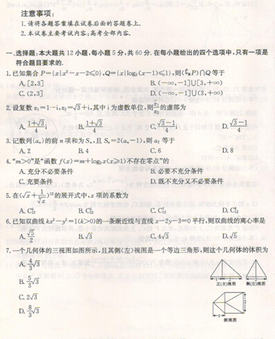 河南省中原名校豫南九校2015届高三一轮复习质量检测(数学理)(扫描版)