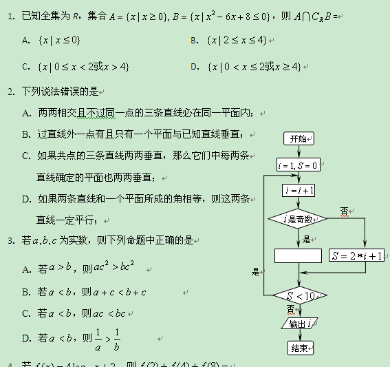 四川省眉山市2015届高三第一次诊断性考试(数学文)