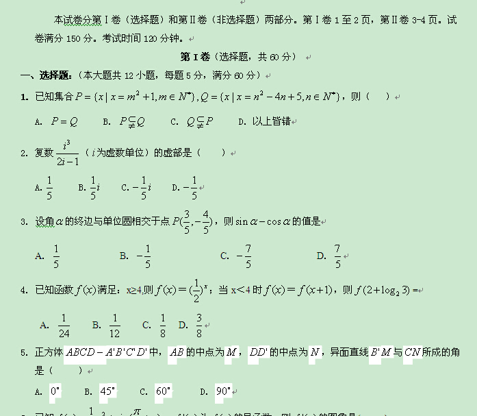 广西桂林中学2015届高三上学期12月月考(数学文)