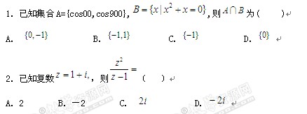 广东省粤西北九校2010届高三上学期期末联考(数学文)