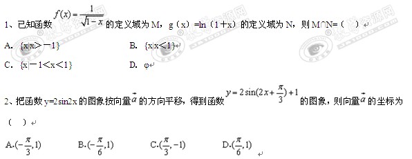 湖北省黄冈中学2009年秋季高三期末考试(数学文)