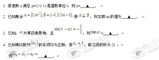 江苏省镇江市2010届高三第一次调研测试(数学)