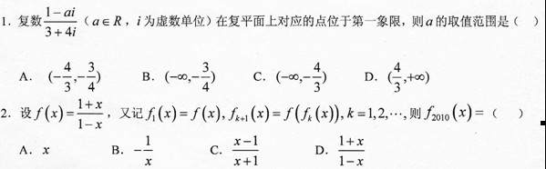 江西省九校2010届高三上学期期末联考(数学理)扫描版