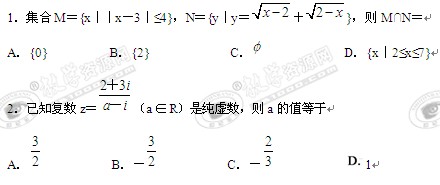河南省信阳市2010届高三上学期期末考试(数学理)