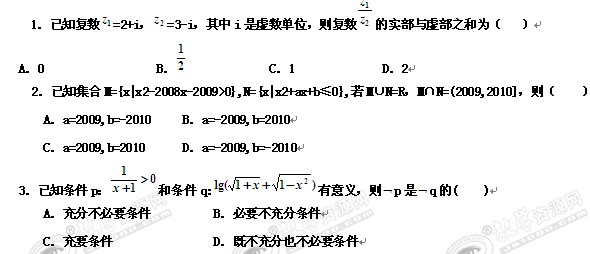 宁夏银川一中2010届高三年级第一次模拟考试(数学理)
