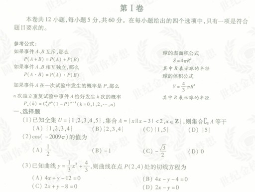 河南省2010年普通高中毕业班教学质量调研考试(数学文)(扫描版)