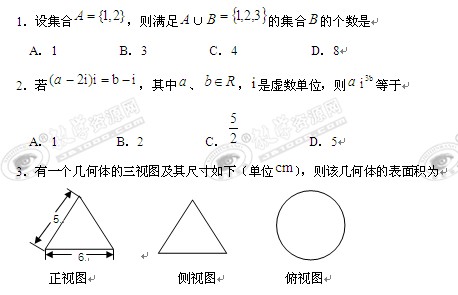 山东省烟台市2010届高三一模(数学理)word版含答案