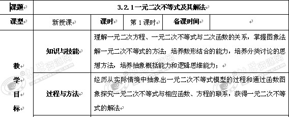 数学:3.2.1《一元二次不等式及其解法》教案(人教A版必修5)