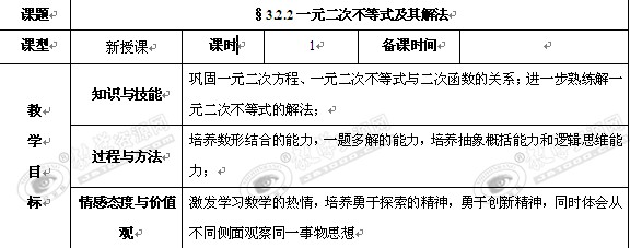 数学:3.2.2《一元二次不等式及其解法》教案(人教A版必修5)