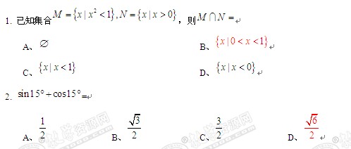 吉林省长春市2010届高三第一次模拟(数学)(答案缺5、6页)