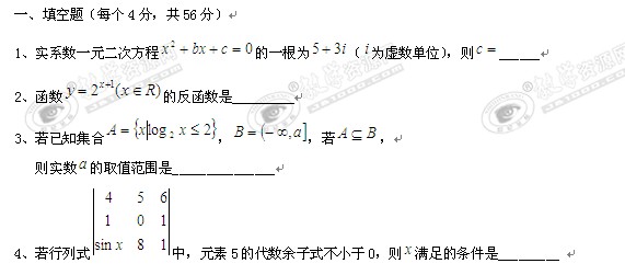 上海市奉贤区2010届高三上学期期末调研测试(数学文)