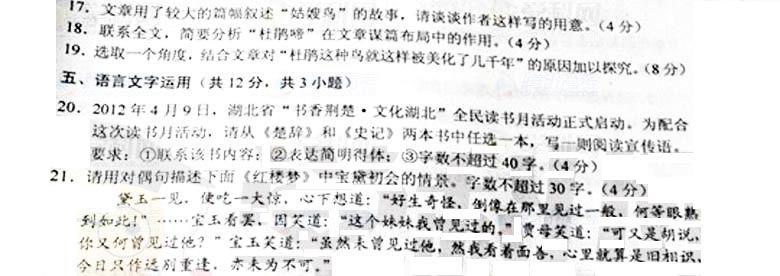 2012年普通高考学校招生全国统一考试湖北卷(语文)